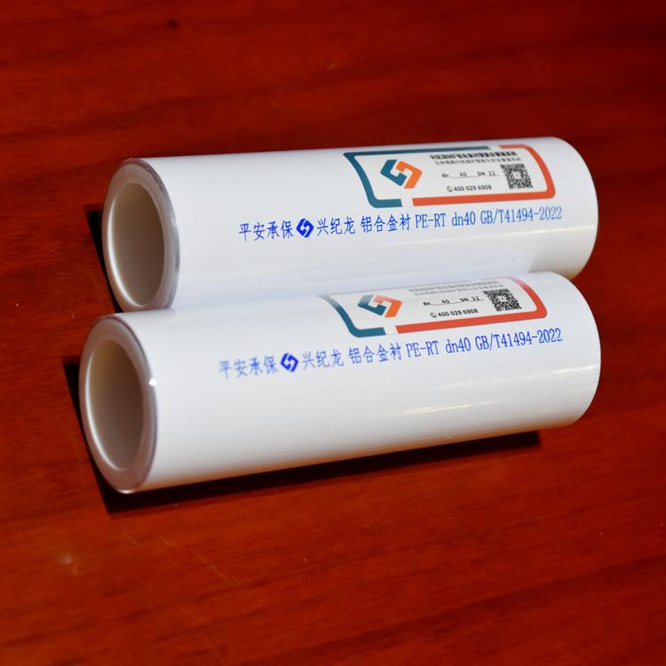 外層鋁合金:外層鋁合金層采用6063合金無縫鋁管,顏色為白色,表面采用高溫噴涂樹脂材料,使外層鋁管不僅有較強的硬度且提高了鋁合金管耐酸堿、耐腐蝕性能,與建筑墻體顏色一致,不褪色。內(nèi)層PE-RT材料:與興紀(jì)龍牌PE-RTII型產(chǎn)品材料特性相同。