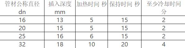 從現(xiàn)在開始即進入加熱時間,并加熱至表1中規(guī)定的時間。規(guī)定的加熱時間到達后,從加熱模頭上拔出管材和管件,拔出速度應適中,不能過急,但可以略帶輕微的抖動動作,以利于拔出。
