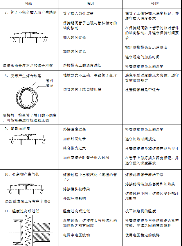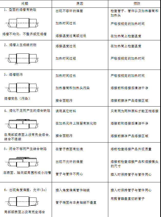 下表列出熔接過程中可能出現(xiàn)的熔接問題和相應(yīng)的預(yù)防方法:
